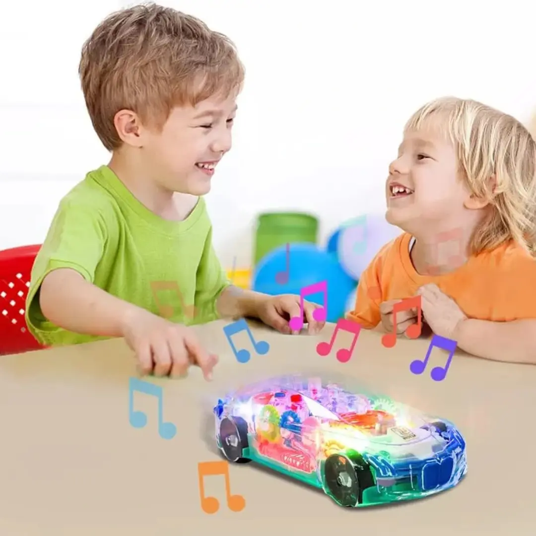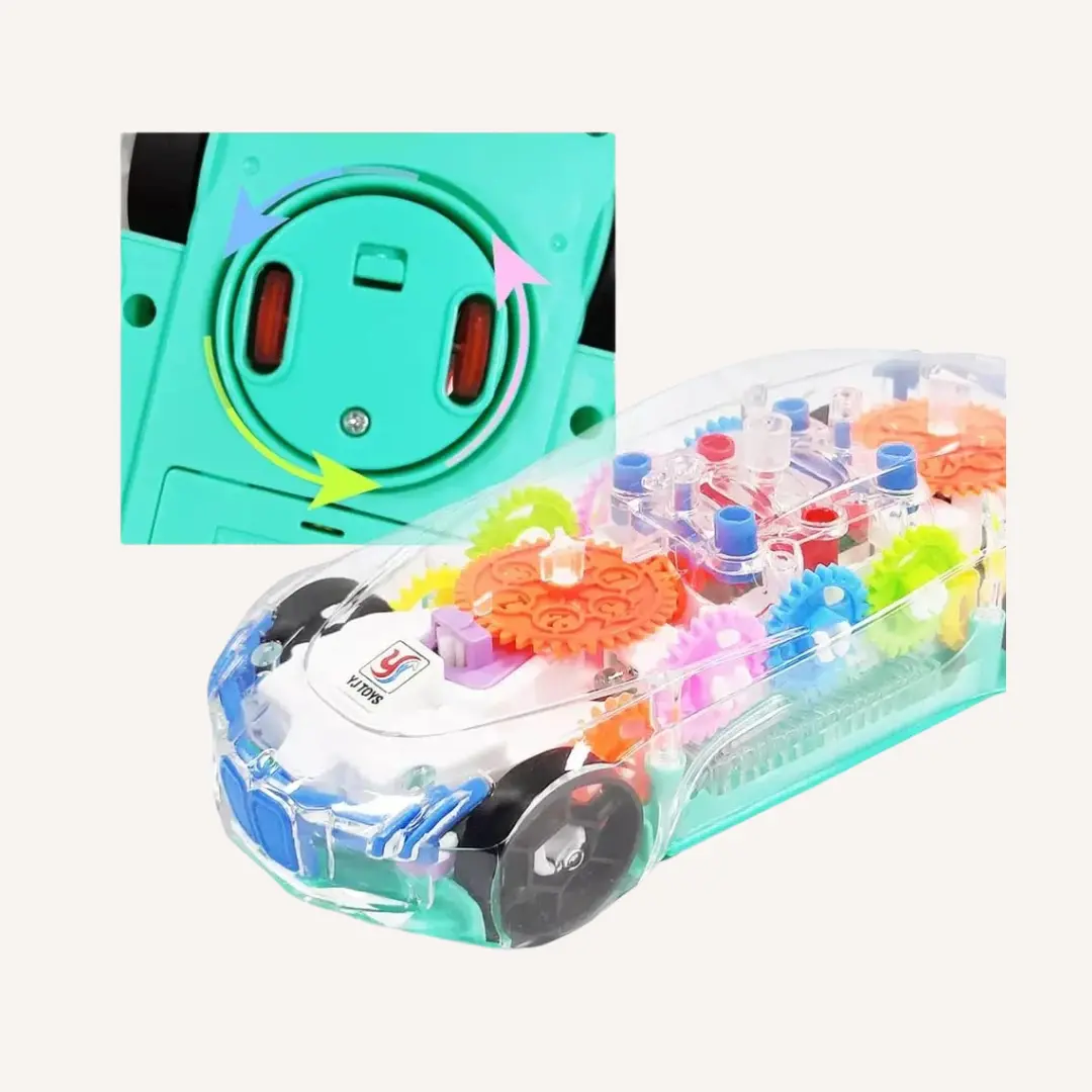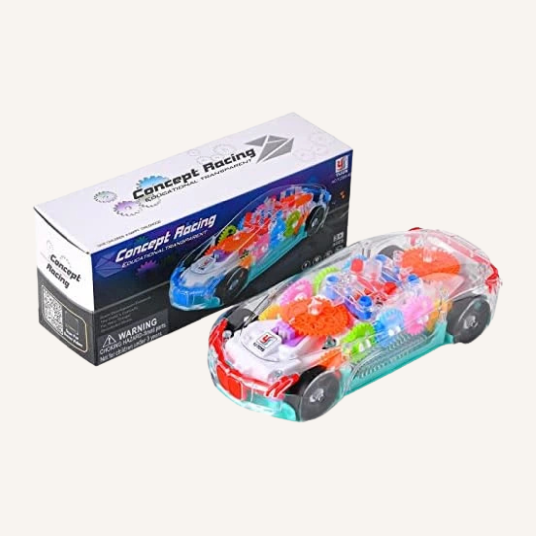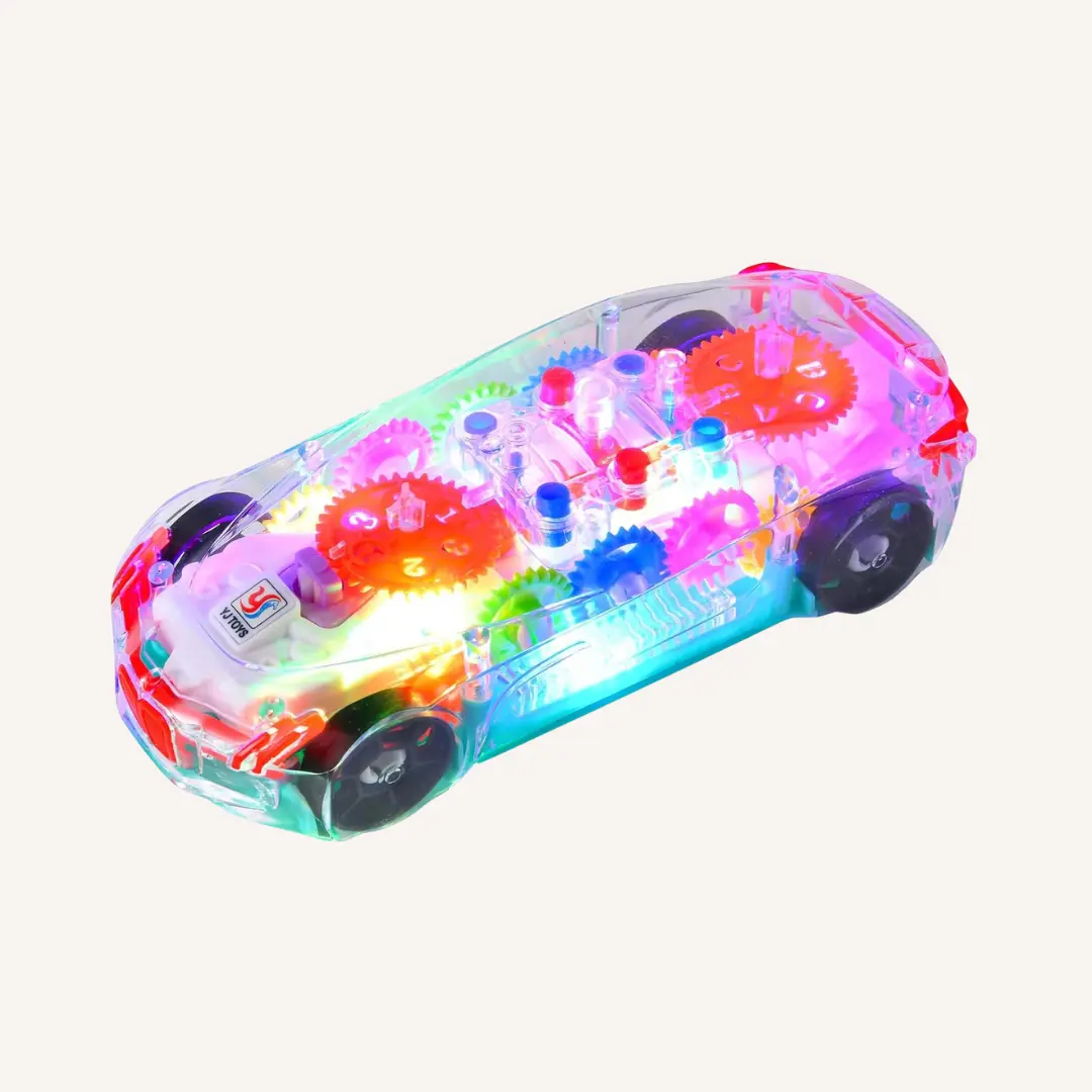 Transparent Gear Toy Car with LED Lights and Sound for Kids