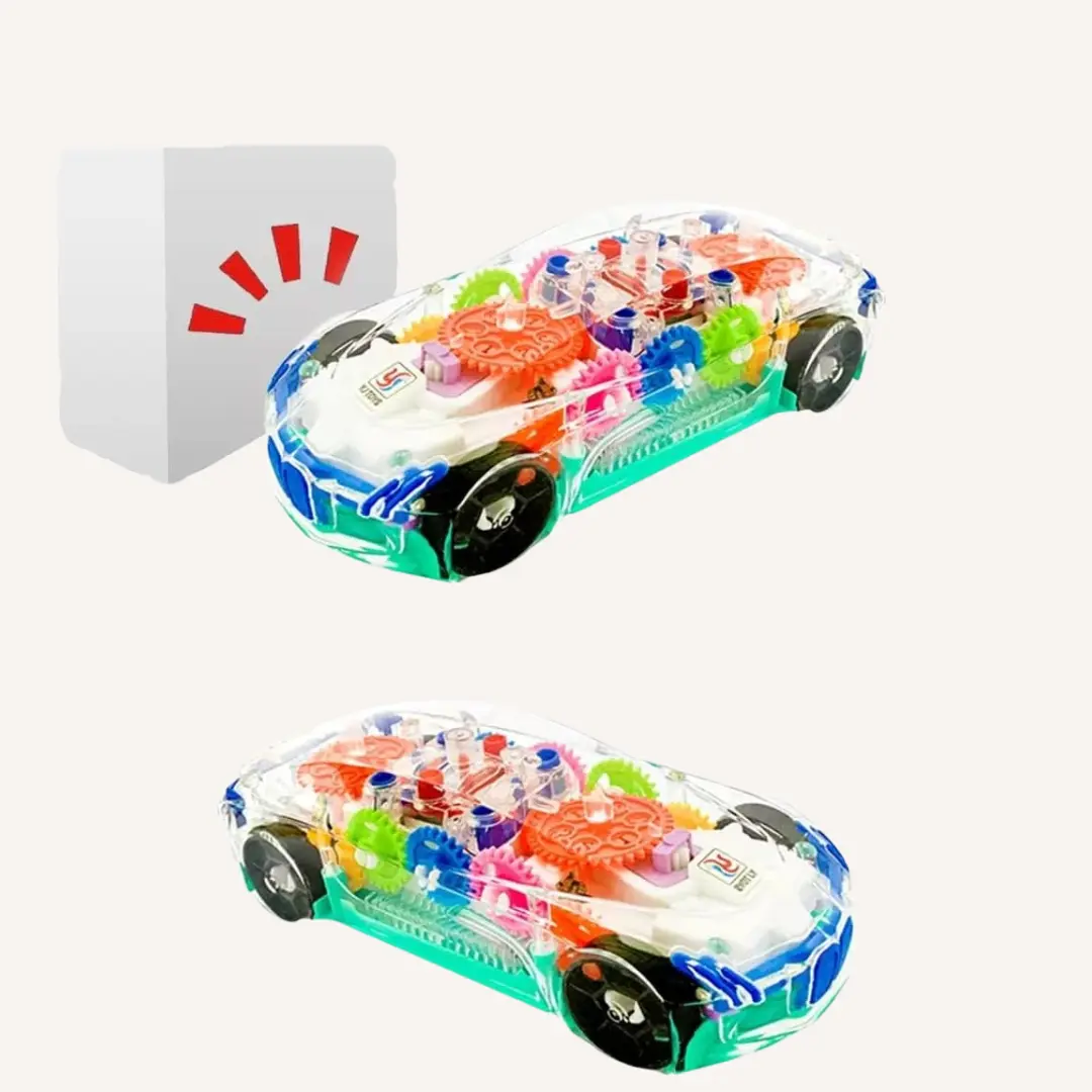 Let your child discover how things move and work with this Transparent Gear Toy Car. The clear design reveals colorful gears in motion, turning playtime into a visual learning experience. Bright LED lights, fun sounds, and automatic movement keep kids entertained while supporting curiosity and early development. A smart choice for parents who want fun with a purpose.