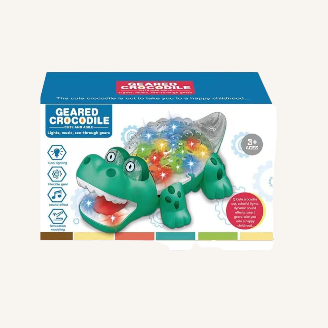 This Transparent Gear Crocodile Toy is a fun and educational electric toy for kids. The clear body shows colorful moving gears, while LED lights and music keep children engaged. With automatic movement and a safe, durable design, it supports early learning, motor skills, and curiosity. A great choice for parents in Pakistan looking for an engaging toy with lights and sound.