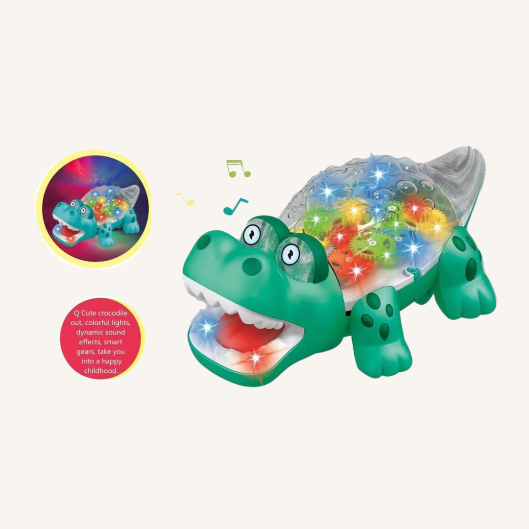 Transparent Gear Crocodile Toy with Lights and Music for Kids